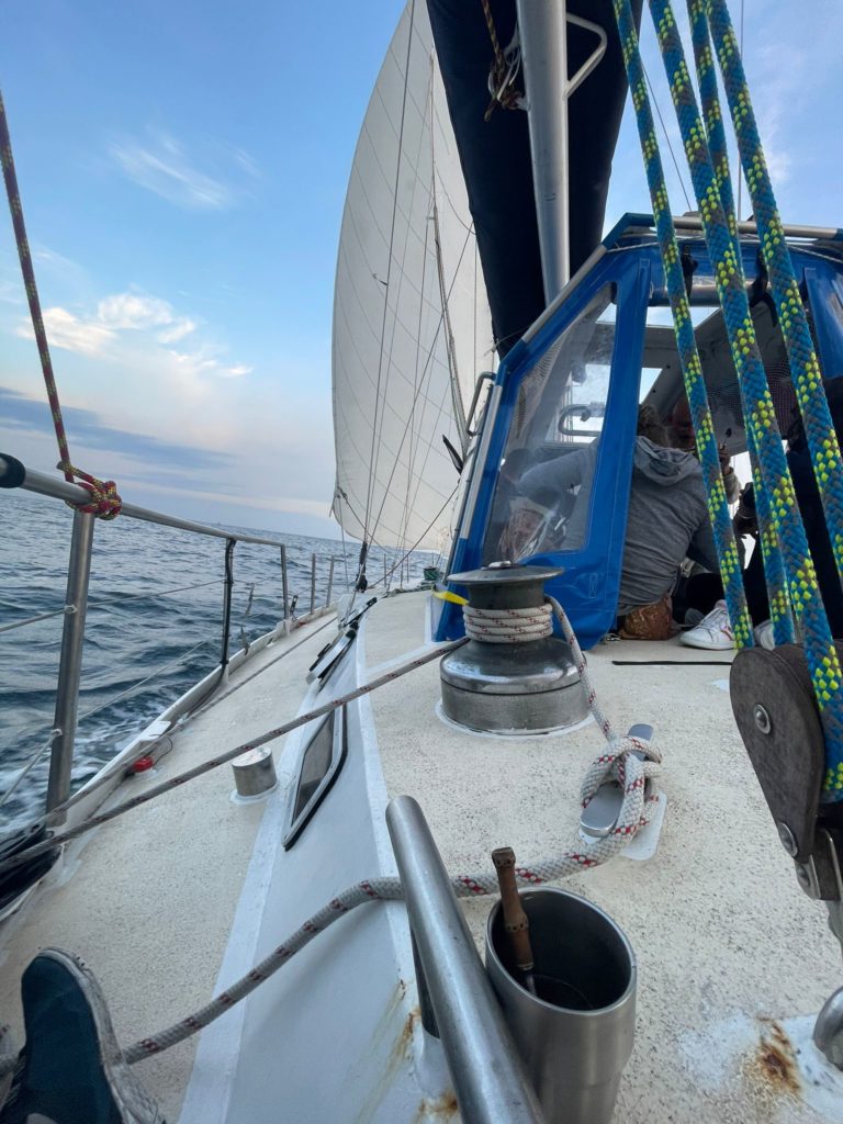 Nous essaierons de mettre l’ancre pour la nuit dans les criques près des falaises mais si cela n’est pas possible, nous ferons de petites navigations le matin ou le soir.
